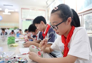 今年暑假,四川省华蓥市组织华蓥中学、双河小学、实验幼儿园等近20所中小学校及幼儿园,集中开办文创坊,并配置专业教师,给小朋友们义务辅导美术、书法、剪纸、石画、泥塑和蓝染、刺绣、编织等10多种文化艺术创作项目,让小朋友接受艺术熏陶,在沉浸式中度过有意义的假期。