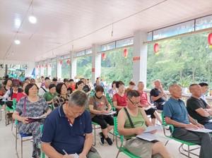 7月24日,彭镇关工委组织五老志愿者60人,在崇州市九龙沟杉木林会议中心举办五老志愿者培训班。杉木林内绿树葱茏,清清的九龙沟溪水哗哗从杉木林旁奔腾而去。杉木林空气清新,环境清幽,是避暑不错的选择,也是会议培训的好地方。