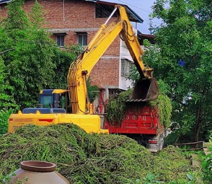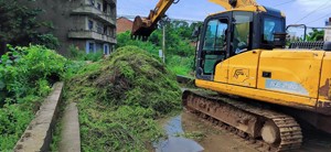 次日一大早,村党委负责人在现场观察发现,河道水位太深,打捞难度非常大。大家集思广益,先是计划用挖机打捞,但没有道路能让挖机驶入河床附近,随后又计划用吊车在金鑫石业场地里远吊,可距离太远,也无法实施。最后,村党委商量决定再次发动年轻党员、队长,继续用人工的方式进行河床水草清运。