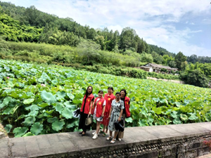铜像前面不远处是近年来建设的故居陈列馆,里面丰富地展示了张澜先生伟大而朴素的一生,是很多外地游客不得不去的地方。铜像后面,是先生居住过的房屋,分为主屋、侧房、书房、厨房等,是故居的核心部分了。从远处望去,故居呈三面合围的院落,坐落在青山绿荷之间,“穿斗小青瓦,白墙坡屋顶”典型的川东北民居风格,在大片荷塘的映衬下,显得那么的清雅脱俗。入口处摆放的石磨、生产用具,房屋里的那些历史物件,至今是否还有张澜留下的痕迹呢?荷花的芳香,让我们不禁会心地笑了起来。