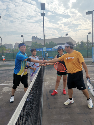 9月16日天刚蒙蒙亮,全体参赛队员就赶到比赛现场,7点30分举行了简短开幕仪式,该分会主席胡兰和泸州老窖国窖酒类销售股份有限公司川东片区经理陈泽分别讲话,该市网球协会会长曹燕到场指导并担任此次比赛裁判长,会员邓智代表参赛队员宣誓,随着区老体协副主席刘元林宣布“比赛开始”,参赛队员分别在6片网球场展开激烈拼杀。队友之间相互鼓励、加油,选手们精神抖擞,全力拼博,时而奋力抽杀,时而灵活轻调,你来我往,互不相让。大力发球,上旋、下旋、底线对抽、正手切球、反手切削,正手穿越、网前截击、中场高压、放小球、挑后场……一球要来回打几十拍才分出胜负,尽情展示自已的看家本领。“加油”“好球”“漂亮”…此起彼伏。许多队员都表示,在“亚运会”即将开幕之际,在中秋节、国庆节前夕,泸州老窖股份有限公司和网球分会给我们提供了这样好的平台,我们要向为国争光的“亚运”健儿们学习,发扬拼搏精神,不仅要赛出水平,还要赛出风格,以实际行动庆祝新中国成立74周年。比赛前大家都谦让对方先选场地或发球,比赛中球挂网得分都要向对方举手表示歉意,赛完都要主动和对方球友握手并祝贺对方取得好成绩。