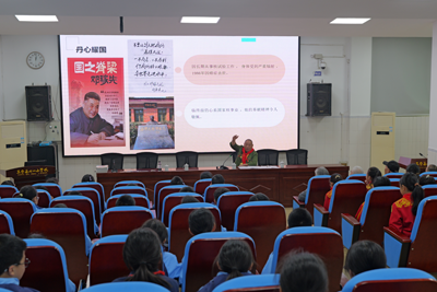 宣讲正式开始,因为有过和邓稼先共事的经历,张光明一直视邓稼先为自己的指路明灯,他动情地为孩子们讲述了在新中国成立不久还一穷二白的年代,毛主席下定决心要搞原子弹,冲破帝国主义核封锁,邓稼先、钱学森等科学巨匠求学报国、以身许国、丹心耀国,最终成就“两弹一星”的故事,孩子们听得津津有味。