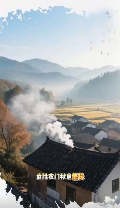 在这里,秋天从不煽情,不悲不喜,只是任光在屋檐、田埂、灶台间静静流淌,如一首无词的民谣,缓缓吟唱。时间仿佛被秋阳晒透了,变得透明而从容,像一杯凉透的清茶,静静搁在斑驳的老木桌一角,茶香淡淡,余味悠长,令人回味无穷。武胜的农门,秋意恰如其分——不浓不淡,不远不近,像一段藏在心底的旧时光,泛着微黄的纸页光泽,适合在某个微凉的午后,轻轻翻开,细细品味,任思绪在光影交错中缓缓沉落。