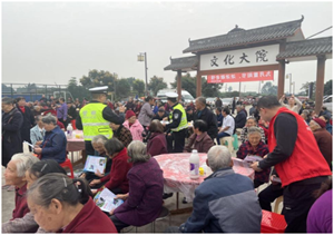 在全镇重阳节各庆祝活动现场,均安排有道路交通安全知识内容,邀请交通专家、交警部门等志愿服务者,通俗易懂地向老年人讲解交通安全法律知识、安全通行应注意的事项,让安全交通法规知识入脑入心。同时,通过制作生动有趣、图文并茂的宣传手册、海报等资料,面向广大老年人展示发放。还组织老年人参加交通安全知识竞赛、模拟驾驶等活动,从各方面增强老年人交通安全意识。