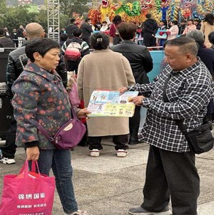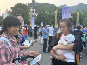 志愿者向市民发送讲解艾滋病预防科普宣传资料