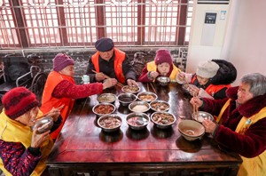 2023年12月20日,四川省华蓥市禄市镇凉水井村幸福院的老人在食用爱心人士专门为他们准备的午餐。