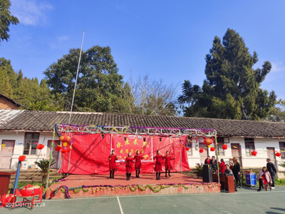 上午10时许,冬阳高照,腊梅芳香。龙岗寨山下原渌井一小校园里,歌声嘹亮,160多名村民欢聚在这里观看社区舞乐队的文艺演出。在节目表演前,社区党委副书记张运德致辞。在热情洋溢的讲话中我们得知:四川绿辰生态农业发展有限公司是南充市乡村振兴协会会员单位、营山县乡村振兴协会常务理事单位,在营山县渌井镇新民社区租地发展优质果业,20多年来,从来没有拖欠过村民土地承包费,没有一次拖欠农民工工资,还年年按照合同给股民分红;并且绿辰生态公司还请来川农大的教授讲解优质水果生产技术,既促进了当地优质水果生产跨越式发展,改变了村民传统的种植观念,带动当地村民致富。