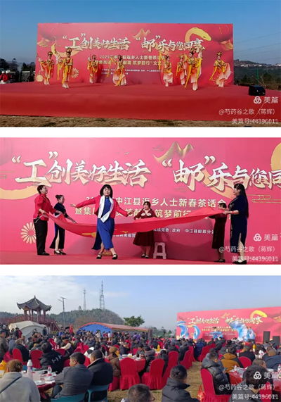 玉龙欢歌辞旧岁,金蛇狂舞迎新春。在中华民族传统的 春节即将到来之际,由中江县总工会中江县集凤镇党委、政府、中江县邮政分公司主办,中江县集凤镇芍药谷路营基地协办的“工”创美好生活 “邮”乐与您同享——2025年中江县返乡人士新春茶话会暨集凤镇“灵蛇献瑞 筑梦前行”文艺汇演在中江县芍药谷露营基地隆重举行。