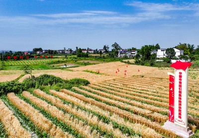 初夏时节,四川省华蓥市在永兴、明月、华龙等乡镇、街道实施的以工代赈项目基地种植的优质小麦、油菜获得丰收,村民们奔忙田间及时收割,乐享以工代赈带来的实惠。