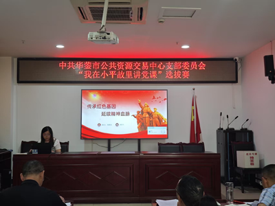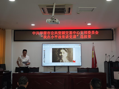 为深入学习贯彻习近平新时代中国特色社会主义思想,持续擦亮“党课开讲啦”活动品牌,5月19日,华蓥市公共资源交易中心在开标一室掀起红色宣讲热潮——“我在小平故里讲党课”初赛选拔赛火热开赛。中心党组书记阳天海全程指导,党支部书记主持赛事,全体党员现场观摩。