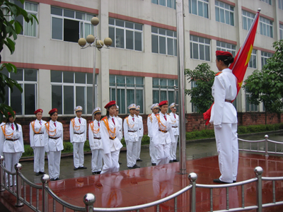 学校国旗班学生升旗训练 王小荣摄