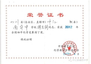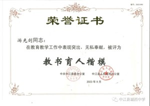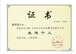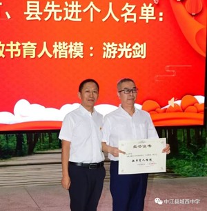 游光剑,中共党员,高级教师。四川师范大学化学专业毕业。德阳市毕业班“优秀教师”;中江县“教书育人楷模”;中江县毕业班“教学能手”;中江县“优秀教师”。