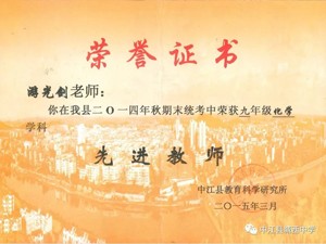 所教学科的教学业绩在县上年年名列前茅、连续十余年被评为中江县毕业班“优秀学科教师”;多年来屡次获得中江县化学学科第一的好成绩,2017年中考还获德阳市化学学科第一的好成绩。2021年被评为德阳市毕业班“先进教师”,2023年被评为中江县“教书育人楷模”受到县委县府表彰,2023年九月被评为中江县毕业班“教学能手”。