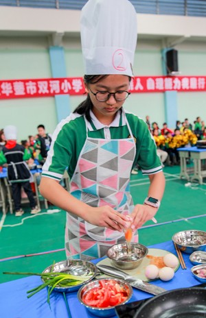 2023年11月2日, 四川省华蓥市双河小学举办“我是小能人,自理能力我最行”为主题的校园劳动节学生秀厨艺活动,让学生在烹制、品味美食的同时, 感受中华烹饪文化的魅力。该活动旨在陶冶学生的生活情趣,培养爱生活、爱劳动的热情和锻炼生活自理能力。