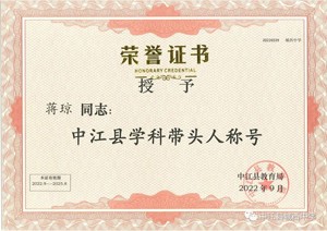 “黑发积霜织日月,粉笔无言写春秋。”蒋琼老师立足狭小的讲台,用坚实的专业基础,开展丰富多彩的英语教学活动。无论线下还是线上,在课堂上总是用幽默风趣、生动形象的语言引导着同学们,在教学新知时创设丰富多彩的情境,她着力于学生学习主动性、积极性的调动。即使是疫情期间的线上教学,她也极其重视学生学习主体性作用的发挥,指导学生及其家长通过录制学生做家务等劳动实践过程中开口说英语的视频、录制用英语介绍学生自己的手工制作视频——变“哑巴英语”为生动形象的口语表达,由浅入深,有效地提高了教学效率,水到渠成地实现了教学目标,更重要的是培养了学生的核心素养。她多次被评为“中江县优秀学科教师”,但她从不自满,就算是领导们、同事们祝贺她考到了全县第三名时她也一笑而已。家长们要上门致谢,她总是谢绝并轻描淡写地说:我只是尽了一位老师的本分罢了。