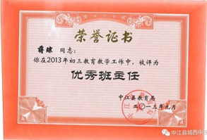 蒋琼老师在工作岗位上始终做好每一事,充实每一天。她严厉起来确实很严厉,孩子们怕她;但是她又如慈母般始终关爱着每一个学生,把学生当成自己的孩子,孩子们又很爱她。孩子成绩下降,她就与孩子们一起分析原因,耐心教导,与家长交流;孩子们进步了,她会用心地为孩子们准备奖状,一张小小的奖状不仅仅是一个心意,更承载着她对孩子们的肯定与无限的期望;孩子表现不如人意或偶尔思想“抛锚”,她会通过电话、网络、家访等不同形式跟家长做深入交流,引导家长如何开展家庭教育;孩子有进步或有退步,许多家长总要把她当成朋友进行沟通甚至长谈,而她却总是不厌其烦地与家长们“交心”畅谈。她用她朴实的行动践行着教育者的初心与使命。