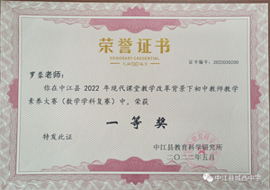 罗蓉,女,中江县城西中学数学教师,中江县师德标兵,中江县学科优秀教师,中江县城西中学优秀辅导教师,覃定亮名师工作室成员,中江县青年教师素养大赛复赛一等奖、决赛二等奖。