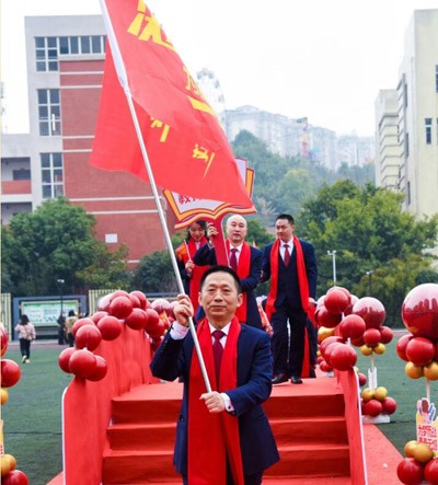 羊崎书记将战旗交予涂方勇书记的刹那,红色旗帜翻涌如浪,战旗所指,是书山题海的征途,更是少年提笔为剑、决胜千里的疆场!