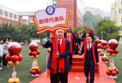 教师方阵步履铿锵,衣袂卷起知识的星火。