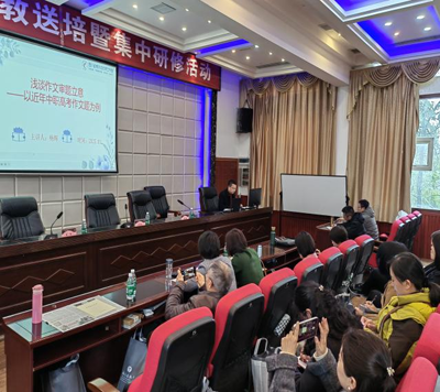 下午,工作室青年成员杨辉、领衔人傅洪成分别作专题讲座。杨辉以《浅谈作文审题立意——以近年中职高考作文题为例》为主题,结合真题解析,系统梳理作文教学的重难点与突破方法;傅洪成则聚焦《创设中职语文语言运用情境,提升中职学生语文学科素养》,通过理论阐释与实践案例,为教师提供提升学生语文学科素养的具体路径。