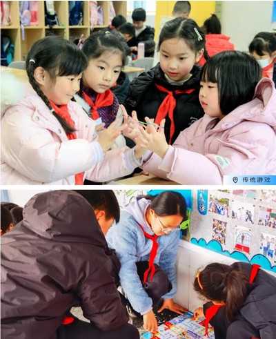分学段规划不同项目,每班彩旗引领,杜绝站桩式活动,增添教学区地面游戏。家长志愿者参与指导“父母儿时的游戏”。