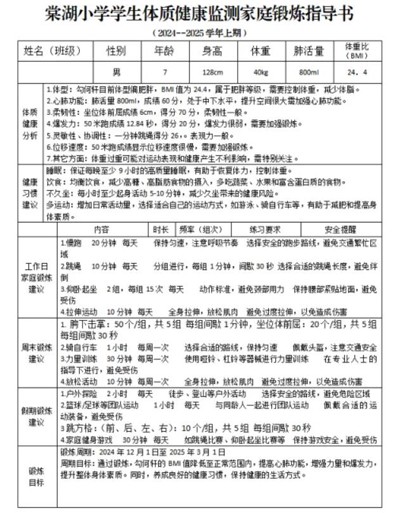 鼓励校外锻炼不少于30分钟:通过个案化运动处方、体质健康报告、居家锻炼和社区锻炼小贴士等方式鼓励并指导家庭锻炼和自主锻炼,培养日常运动习惯与运动兴趣。