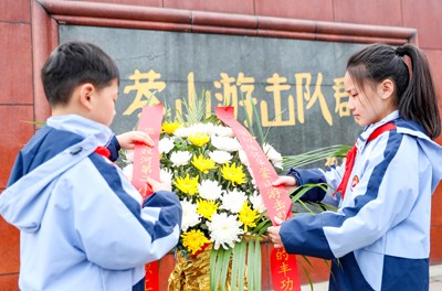 清明节临近, 革命老区、“红岩”故里四川省华蓥市开展系列祭扫活动,当地干部群众及少先队员来到华蓥山游击队纪念馆、红岩广场、华蓥山游击队群雕前,缅怀先烈,铭记历史。
