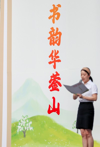 2025年4月17日,在四川省华蓥市举行的“川渝共建·阅享书香”2025年“书悦华蓥”全民阅读活动启动仪式上,市民在展演朗读。(邱海鹰 刘南贤/文图)