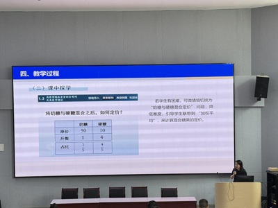 四川天府新区综合高级中学学科带头人黄婧,演讲的主题是离散型随机变量的分布列及其数字特征,通过教学背景、教学目标、教学过程逐一分析,利用思维导图的方式,将案例贯穿到教学整个过程中,得到台下老师们一致认可,不少人接连拍照;黄老师从事教学多年,分享了教学过程中课前导学、课中探学、课后固学三个方面及专业特色案例、增加实践活动、打造 “做中学、学中用” 的高效课堂。会场气氛活跃,演讲结束,全场爆发出经久不息的掌声。
