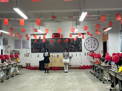 文艺风采同样亮眼。在关工委与德育处的鼓励支持下,多个班级由学生自主编排节目,《歌唱祖国》的激昂合唱、中秋主题诗词的深情朗诵、幽默小品的精彩演绎轮番上演;部分班级还穿插“中秋成语接龙”游戏,“花好月圆”“国泰民安”等词语接连涌现,在轻松氛围中传递文化韵味。
