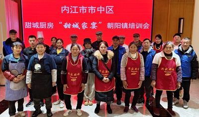 为更好地促进当地乡村经济发展,充分发挥文旅商务等部门的作用,进一步加大甜城厨房“甜城家宴”这一成果的推广,12月11日,由内江市市中区文广旅局、区商务局、区农业农村局、区科协共同主办,区老科协和朝阳镇党委政府承办,甜城厨房“甜城家宴”培训会在市中区朝阳镇乡村酒店“竹苑水乡”举行。