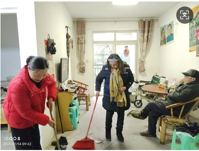 2025年1月16日,成都市双流区怡心街道老体协,开展“我们的节日·春节”暖冬关爱活动,帮扶特殊人群,老体协志愿者,分组深入每个小区,为特殊杜居老人送去温暖包,打扫卫生,整理房间,让他们度过一个舒适而温馨的春节。