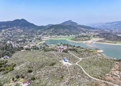 )2025年3月23日,四川省华蓥市利用天池湖畔治理后的石漠化土地种植的优质脆李正鲜花绽放,吸引不少市民前来踏青赏花,乐享春天的美好。(邱海鹰)