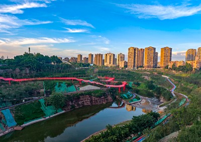 2025年7月2日傍晚,四川省广安市利用城区荒芜的西溪峡谷打造的文旅新地标西溪峡公园,在夕阳映照下显得金碧辉煌、格外美丽,成为市民消夏纳凉、打卡观景的良好处所。
