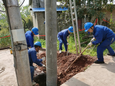 事故就是命令,抢修就是责任。根据现场勘查情况,工作人员决定在断杆旁重新开挖杆洞、新立电杆,是消除故障、快速复电的最佳方案。方案确定后,抢修人员迅速行动,准备材料、联系吊车、办理紧急抢修手续……