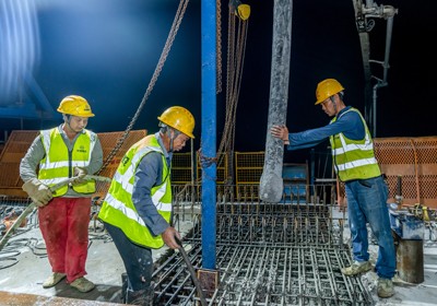 2025年8月23日,中铁十局的建设者挑灯夜战在西渝高铁四川省广安华蓥市明月镇人和寨村林家沟特大桥连续梁合龙施工现场。(邱海鹰 刘 忠/文图)