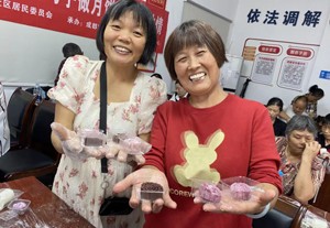活动时,九江街道石井社区热闹非凡,居民们早早地来到了现场。社区老协在活动开始前提前准备好了各种不同口味的月饼馅料以及不同图案的模具。