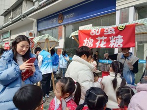 此次活动内容丰富,有面部彩绘,猜灯谜、套圈圈、拓印福字,制作糖葫芦、棉花糖、糖画,还有社区的特色“扎染”艾草锤,现场制作。