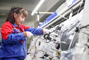 2024年2月19日,四川省华蓥市通过“春风行动”留在家乡的返乡民工,在华蓥山经开区领创电子有限公司生产流水线上安心作业。