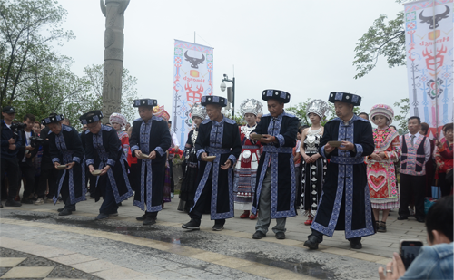 开幕式结束后,组织开展了从石海涌浪至石海僰寨旅游道上的苗族长号、芦笙、摆手舞、打莲枪等表演形式的文化巡游活动。