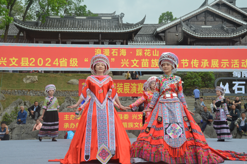 4月22日上午10时,以“浪漫石海·踩花山”为主题的“2024年四川·兴文苗族花山节”正式开幕。在开幕式上,举行了《四川省铸牢中华民族共同体意识研究基地兴文县分基地》授牌仪式、县委书记、县长周明军在开幕式上作了热情洋溢的致辞,宜宾市政协副主席王宾宣布:“2024年四川·兴文苗族花山节”开幕,随后开展了《笙动兴文》《浪漫石海》《鼓舞中国》实景节目表演。