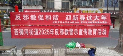 为认真贯彻落实中央和省委、市委、区委反邪教工作部署要求,深入推进反邪教警示宣传教育,筑牢全社会反邪教思想防线和行动自觉,维护春节期间辖区政治安全和社会稳定,2025年1月22日上午,成都市青羊区反邪教协会联合青羊区西御河街道办事处在光明巷开展“反邪教促和谐,迎新春过大年”为主题的2025年春节期间反邪教警示宣传教育活动,同时还开展了禁毒和防诈骗宣传活动。