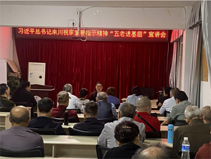 9月27日上午,内江市委宣讲分队第一分队成员,四川省关工委“五老”宣讲团成员、内江市“五老”宣讲团副团长、内江市市中区关工委副主任、中国民间人才库第一批入库者周昭荣走进内江市市中区城东街道黄桷井社区宣讲习近平总书记来川视察重要指示精神。社区党员干部和居民代表50余名参加了此次宣讲会。