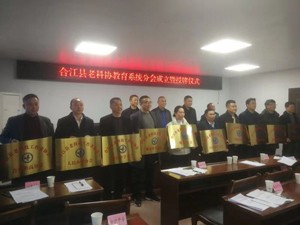 1月16日,合江县老科协教育分会成立暨授牌仪式在县教育体育局会议室举行。县老科协会长张发远、县教育和体育局局长唐焰、县老科协副会长刘光永出席仪式,并为县新成立的合江县老科协教育分会和合江中学分会、马街中学分会、城关中学分会、榕山中学分会、白沙中学分会、合江职高分会、少岷职校分会、人民小学分会、符阳小学分会等10个分会授牌,相关学校党组织书记或校长、分会会长参加了会议。