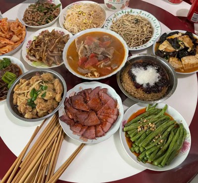 猪肉收拾妥当后,主人家就开始准备请客的饭菜。厨房里,女人们忙碌起来。切肉、配菜、生火,有条不紊地进行着。猪肉的做法多种多样,最受欢迎的当属回锅肉和炖猪蹄。