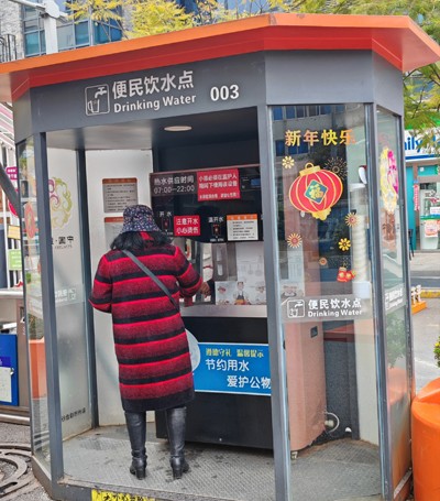 在彭州市天彭街道牡丹北路243号,一个崭新的便民饮水点近期投入使用。鸿运星城小区外小游园的这一设施,给周边居民和过往行人带来了极大的便利。居民刘女士高兴地说:“现在在彭州,到处都能感受到城市的便捷,生活很幸福。”口渴的市民只要轻轻按下直饮水机的按钮,就能得到温度合适、干净卫生的饮用水。即使没有带水杯,现场提供的一次性纸杯也能解一时之需。