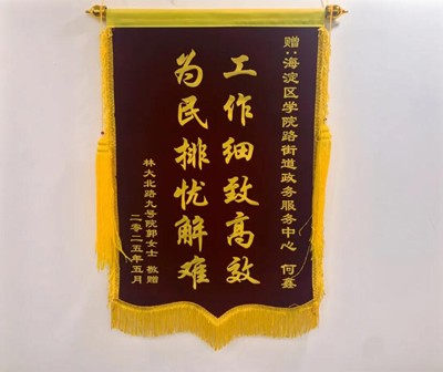 近日,办事人郭阿姨带着深深的感激之情,将一面写有“工作细致高效,为民排忧解难”的锦旗送到了学院路街道政务服务中心。这面锦旗不仅是对综合窗口工作人员何鑫个人工作的高度赞扬,更是对政务服务中心服务质量的充分肯定。