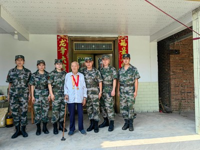 “战友战友亲如兄弟,革命把我们召唤在一起……”临别时,当队员唱响嘹亮的《战友之歌》时,老人的眼眶饱含热泪,看到这一群“迷彩”队,仿佛回到了昨天的军营。“向抗战老兵范志华敬礼!”队员们用标准的军礼向老人告别。