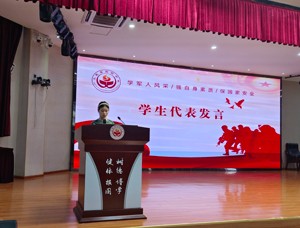 学生代表发言,她表示将以军人为模范,以饱满的热情,敢于拼搏的精神,不畏辛苦的品质,全身心投入到军训中去。