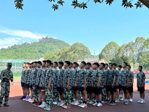 为提高学生精神意志品质,增强学生爱国热忱,点燃青春梦,淬炼报国志,大邑县实验中学于7月7日开展高2023级新生国防教育系列活动。